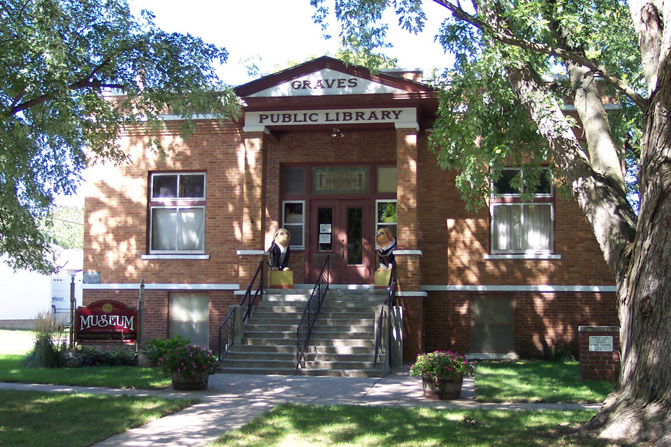Graves Public Library has been reopened as Graves Library Museum. Located on Third Street, two and a half blocks west from Highway 35, in Wakefield, Nebraska, this library was one of the most luxurious libraries in the area when it was constructed. A walk through the building will take you as far back as 1881.