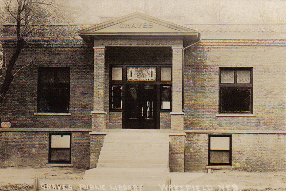 Located on Third Street, three and a half blocks west from Highway 35, in Wakefield, Nebraska, this library was one of the most luxurious libraries in the area when it was constructed in 1915 by Philo Graves. It was established as Graves Public Library as a memorial to his son, Jay.